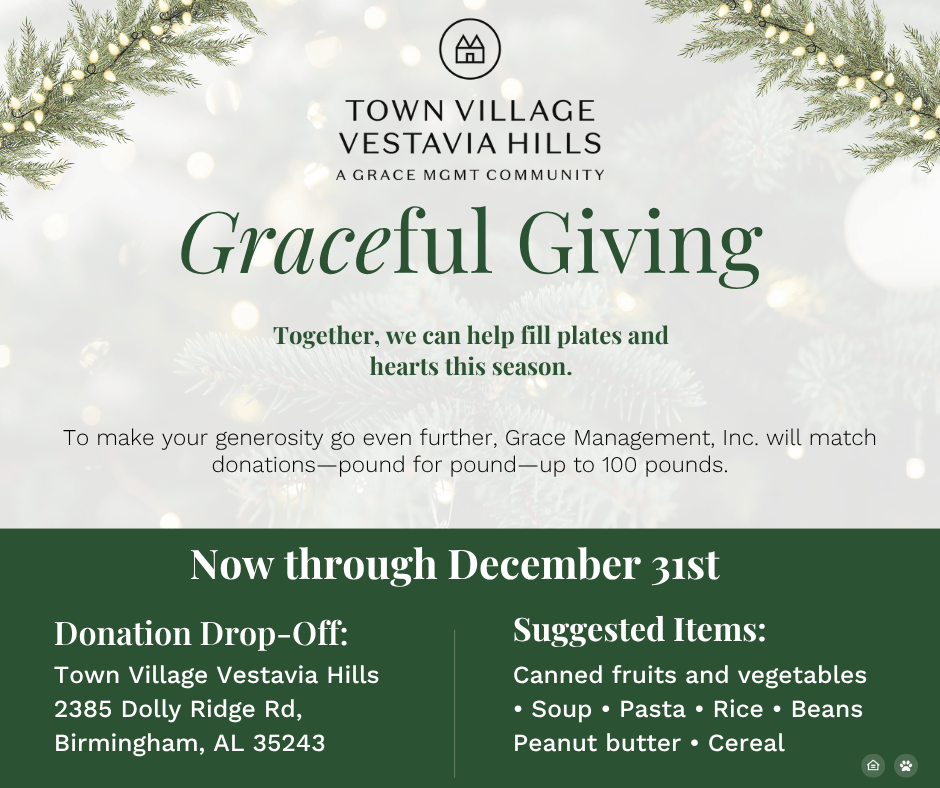To make your generosity go even further, Grace Management, Inc. will match donations—pound for pound—up to 100 lbs! We can help fill plates and hearts this season through Graceful Giving.